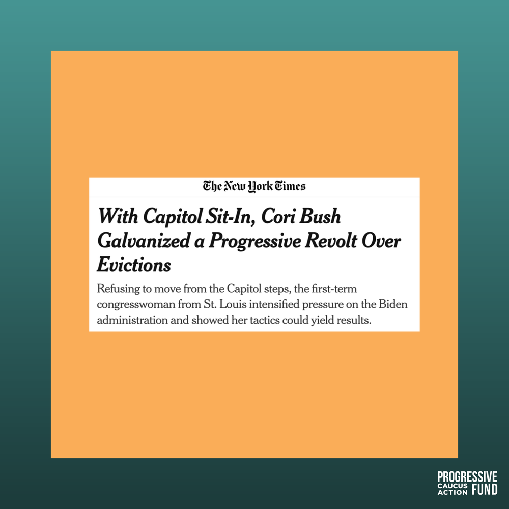 Members of Congress can also use their physical presence to affect change even when there is no “site” for them to visit. In 2021, Congresswoman Cori Bush (D-MO) began a sit-in on the U.S. Capitol steps and slept there to protest a federal eviction moratorium’s expiration. The Congresswoman’s direct action garnered tremendous attention and support for the eviction moratorium, which was extended within days.