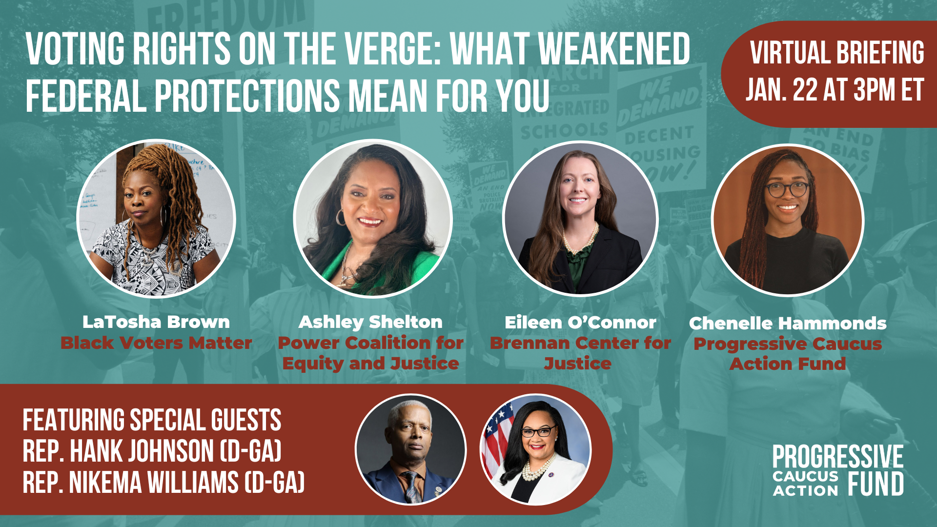 Join the Progressive Caucus Action Fund for Voting Rights on the Verge: What Weakened Federal Protections Mean for You, a briefing on the state of the Voting Rights Act on Wednesday, January 22 at 3PM. Register here!